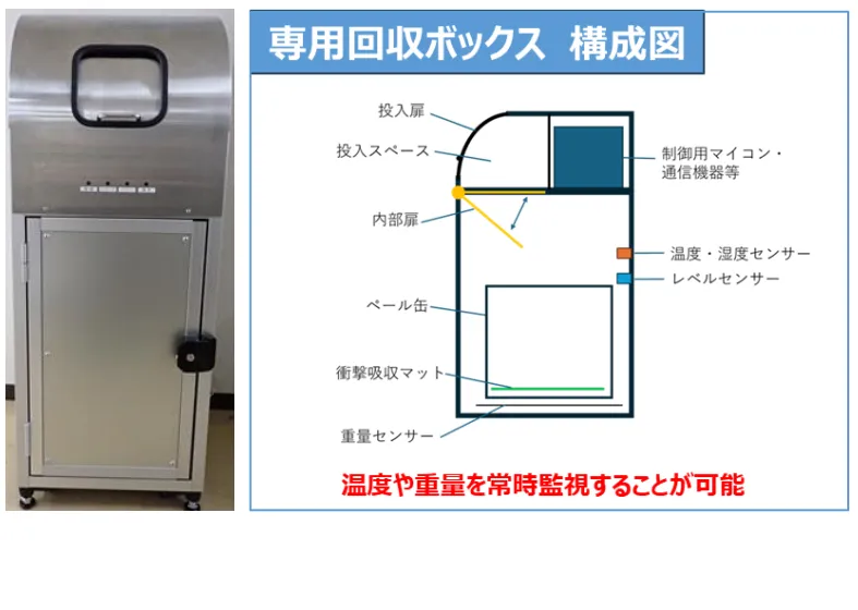 今回の実証試験には、荏原環境プラント株式会社が温度・重量センサー付き専用回収ボックスを提供する他、株式会社電知およびエムケー工業株式会社が消火機能付き専用ボックスを提供します。これらの企業との連携により、住民に対してより安全で信頼性の高い回収システムを提供することが可能になります。