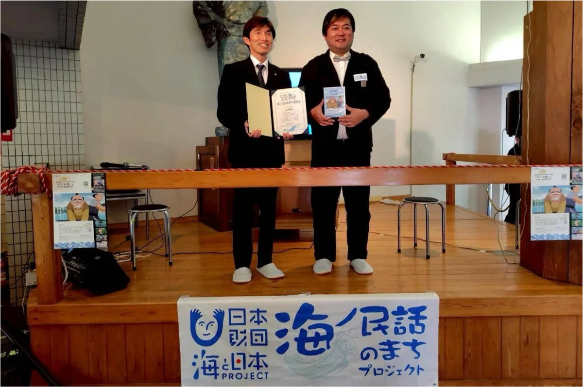 完成した「カミの話」をお披露目するため、アニメ監督は黒澤栄則町長を表敬訪問しました。この日は、アニメーションの完成を祝う認定式が行われ、皆野町は「海ノ民話のまち」として正式に認定されました。黒澤町長は「地域に伝わる民話が、こうした素晴らしいアニメーションになることを大変誇らしく思います」とコメントし、皆野町の文化に対する深い愛情を示しました。