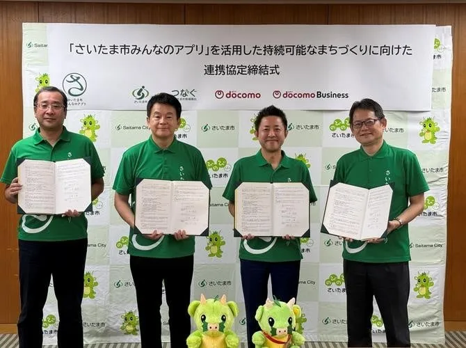 2023年10月1日、さいたま市役所において、株式会社NTTドコモ、NTTドコモビジネス株式会社、株式会社つなぐとの連携協定の締結式が執り行われました。この協定は、スマートフォンアプリ「さいたま市みんなのアプリ」を活用し、地域の課題解決や地域社会、さらには企業の価値成長を加速させることを目的としたものです。