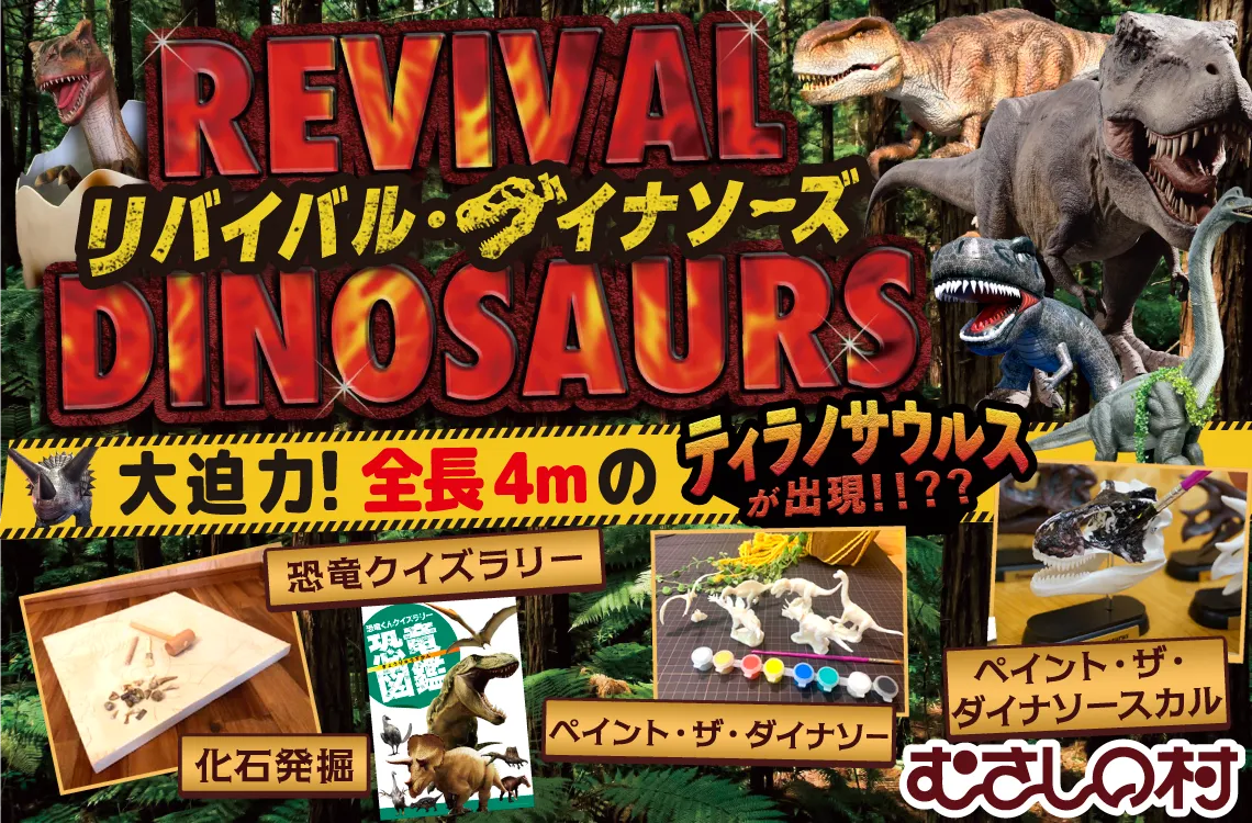 「リバイバル・ダイナソーズ」は、恐竜好きのお子さんから大人まで楽しめるイベントが盛りだくさんです。是非、この機会に友達や家族を誘って、むさしの村へ遊びに行きましょう!詳しい情報は