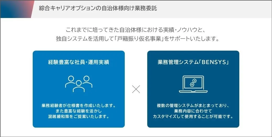 綜合キャリアオプションは、自治体への業務支援を通じて、地域社会に貢献しています。特に戸籍法改正による新たな業務負担を軽減するため、効果的な支援を行っており、地域の安心・安全な行政運営に一役買っています。今後もこの取り組みを拡大し、多くの自治体と協力していくことが期待されます。