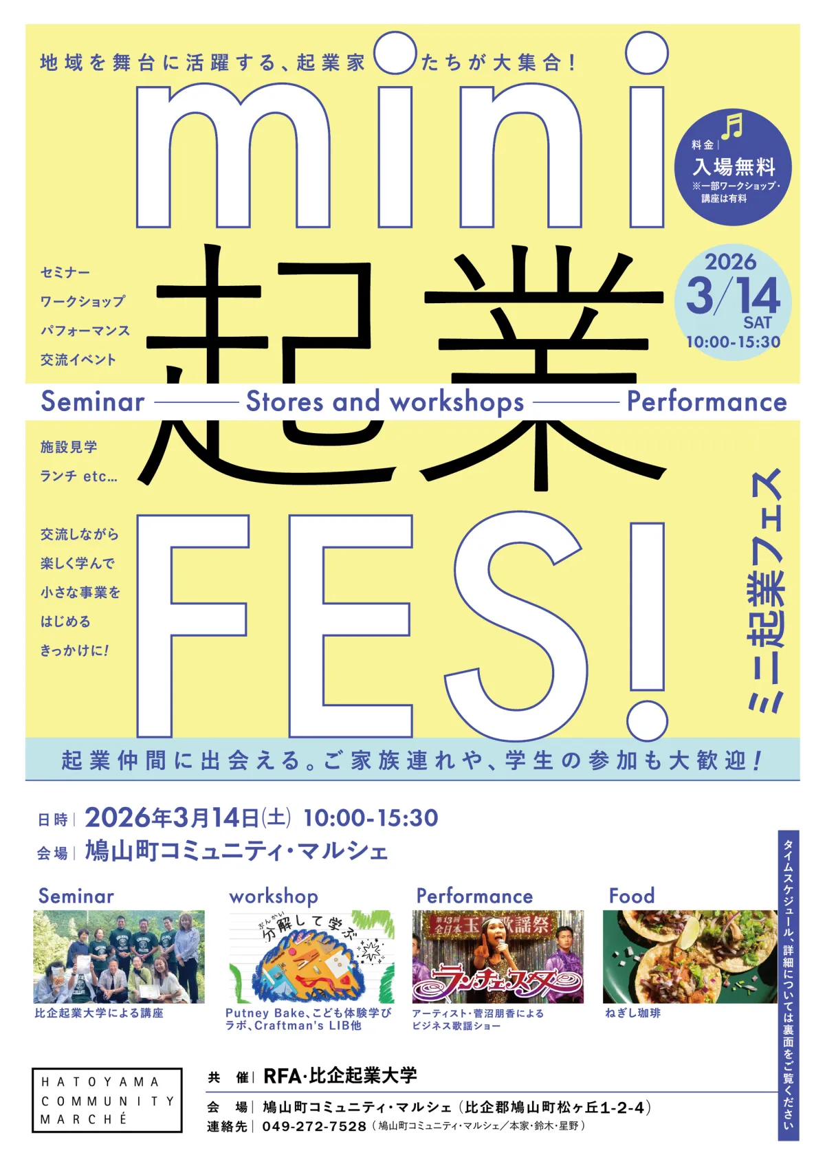 - - 参加費: 無料(フード・ワークショップは有料)