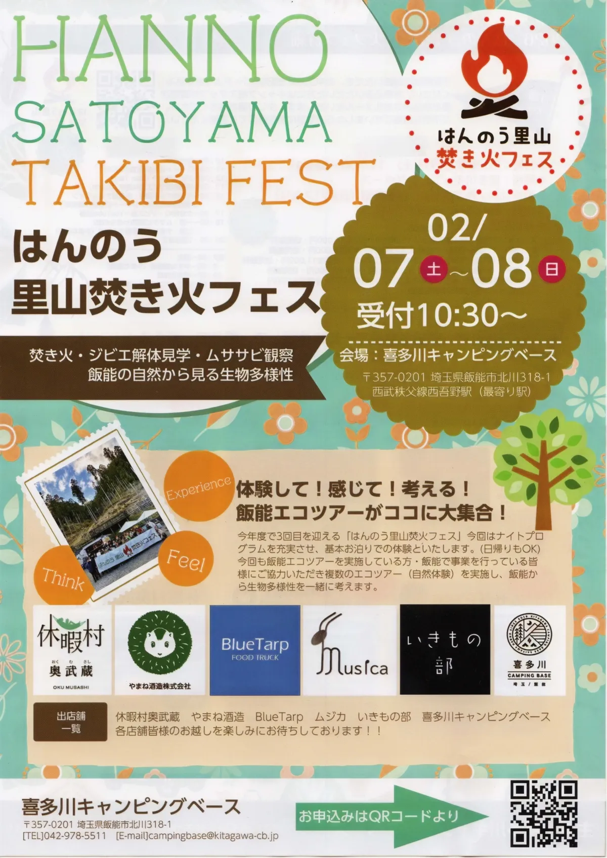 2026年2月7日(土)・8日(日)、埼玉県飯能市の喜多川キャンピングベースで「第3回はんのう里山焚き火フェス」が開催されます。このフェスは、飯能の美しい自然を舞台に、「飯能の自然から見る生物多様性」をテーマとし、生物多様性を身近に感じられる貴重な体験を提供します。