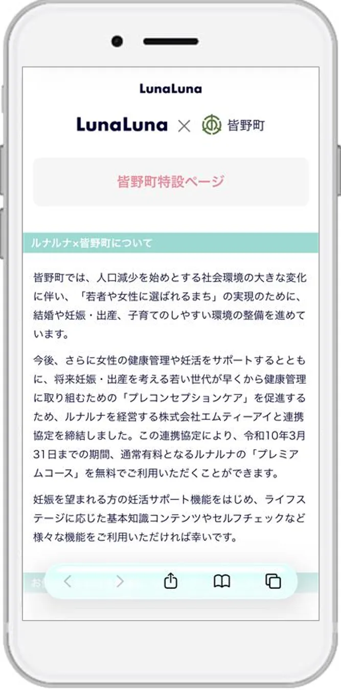 皆野町では、人口減少が進む中で「若者や女性に優しいまち」を目指しており、結婚や妊娠、出産などを支援する施策に力を入れています。特に「プレコンセプションケア」に焦点を当てており、健康管理をライフステージの早期から促進する方針を持っています。このような背景のもと、エムティーアイが25年にわたって提供している女性向けの健康管理アプリ『ルナルナ』との連携は、双方にとってのメリットが期待されています。