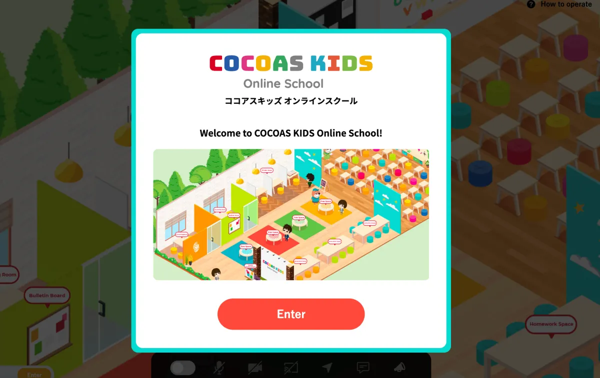 このような課題に対し、COCOAS KIDSは自宅から安全に参加できるオンライン型学童を開発しました。メタバース空間では放課後をオールイングリッシュで過ごせる革新的な学びの形を提案しています。
