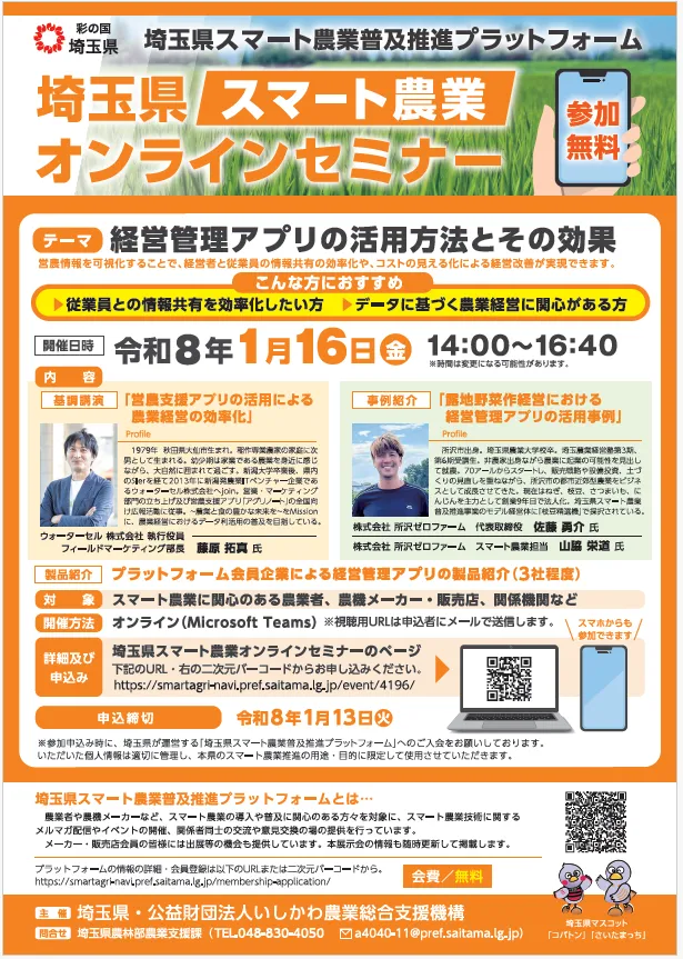 埼玉県スマート農業オンラインセミナー開催のお知らせ