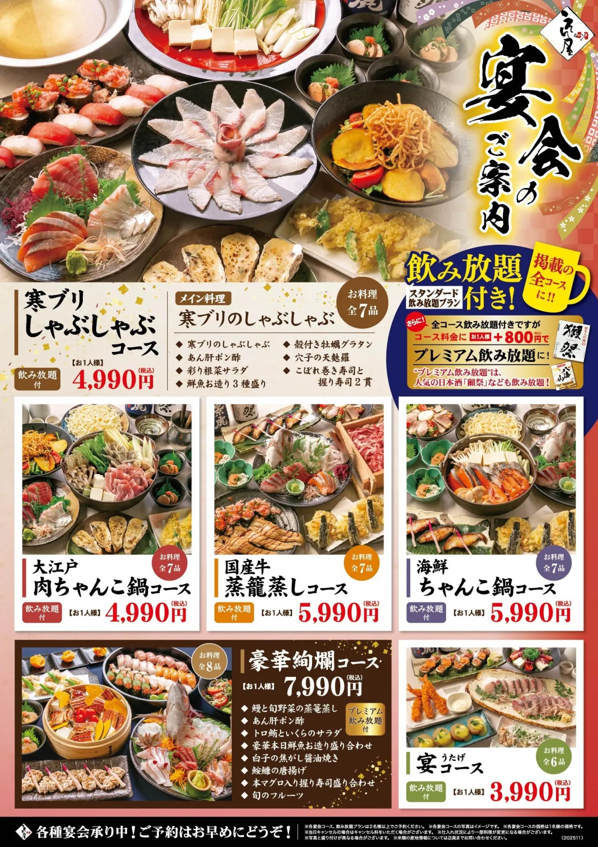 東京と埼玉に展開する海鮮居酒屋「鮨のえん屋」では、11月18日(火)より、豪華な冬の宴会メニューを提供開始します。寒い季節にぴったりな料理がラインアップされていますので、忘年会や新年会にぜひご検討ください。