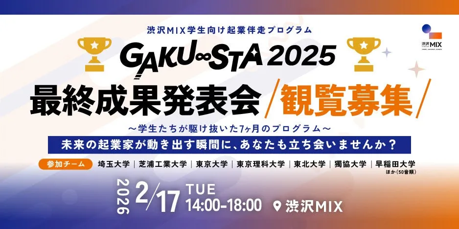 埼玉県が誇るイノベーション創出拠点、渋沢MIXでは、学生たちの熱意に満ちたビジネスアイデアが一堂に会する特別なイベントが開催されます。2月17日(火曜日)14:00から18:00までの間、さいたま市大宮区にある渋沢MIXイベントスペースで、「GAKU∞STA」最終成果発表会が行われ、参加する学生たちが磨き上げてきたビジネスプランを披露します。