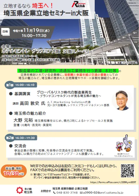 埼玉県企業立地セミナーin大阪のご案内