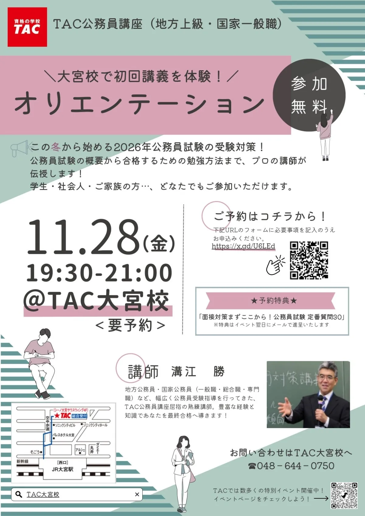 公務員を目指す皆さんに朗報です!2025年11月28日、TAC大宮校にて「この冬始める!初回講義を体験!オリエンテーション」が開催されます。このイベントでは、2026年度の公務員試験(地方上級・国家一般職)の受験対策について学べます。