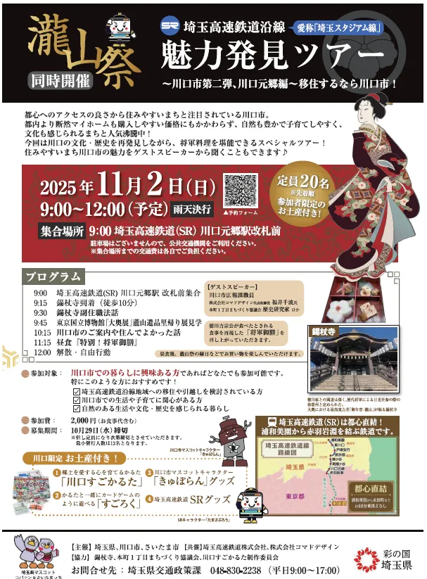 自然と文化に溢れる埼玉高速鉄道沿線の魅力を再発見できるこのツアーは、地域の特色を知る絶好の機会です。たくさんの方に参加いただき、埼玉の素晴らしさを知っていただければと思います。皆さんのご参加を心よりお待ちしております!